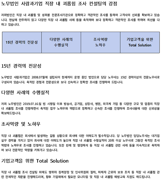 ³ë¹«¹ýÀÎ »ç¶÷°ú±â¾÷Àº Àü¹®ºÐ¾ßº° ³ë¹«»ç·Î ±¸¼ºµÈ